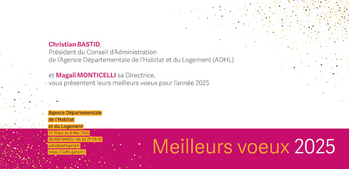 L'Agence Départementale de l'Habitat et du Logement (ADHL), son Président, son Conseil d'administration, sa Direction et ses équipes vous présentent leurs meilleurs voeux pour l'année 2025.